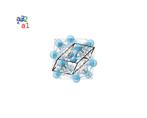 | $\mathbf{B_{3}}$ | = | $\frac{3}{4} \, \mathbf{a}_{1}+\frac{3}{4} \, \mathbf{a}_{2}+\frac{3}{4} \, \mathbf{a}_{3}$ | = | $\frac{3}{4}a \,\mathbf{\hat{x}}+\frac{3}{4}a \,\mathbf{\hat{y}}+\frac{3}{4}a \,\mathbf{\hat{z}}$ | (8c) | H I |