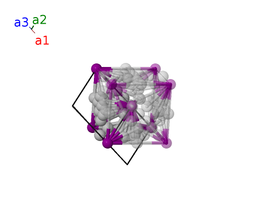| $\mathbf{B_{7}}$ | = | $\frac{1}{4} \, \mathbf{a}_{1}+\frac{1}{2} \, \mathbf{a}_{2}+\frac{3}{4} \, \mathbf{a}_{3}$ | = | $\frac{1}{2}a \,\mathbf{\hat{x}}+\frac{1}{4}a \,\mathbf{\hat{y}}$ | (12d) | Ag II |
