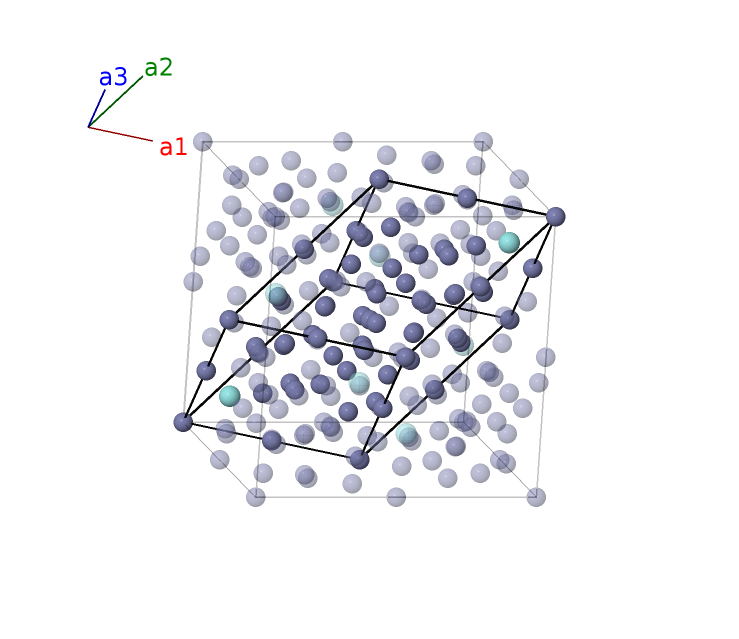 | $\mathbf{B_{45}}$ | = | $\left(2 x_{5} + z_{5} + \frac{1}{2}\right) \, \mathbf{a}_{1}- z_{5} \, \mathbf{a}_{2}- z_{5} \, \mathbf{a}_{3}$ | = | $- a z_{5} \,\mathbf{\hat{x}}+a \left(x_{5} + \frac{1}{4}\right) \,\mathbf{\hat{y}}+a \left(x_{5} + \frac{1}{4}\right) \,\mathbf{\hat{z}}$ | (96g) | Zn IV |