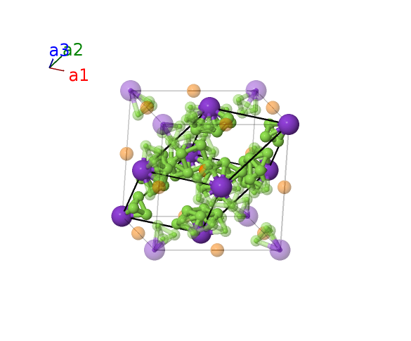 | $\mathbf{B_{2}}$ | = | $\frac{1}{2} \, \mathbf{a}_{1}+\frac{1}{2} \, \mathbf{a}_{2}+\frac{1}{2} \, \mathbf{a}_{3}$ | = | $\frac{1}{2}a \,\mathbf{\hat{x}}+\frac{1}{2}a \,\mathbf{\hat{y}}+\frac{1}{2}a \,\mathbf{\hat{z}}$ | (4b) | P I |