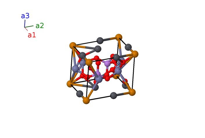 | $\mathbf{B_{17}}$ | = | $- x_{6} \, \mathbf{a}_{1}- \left(x_{6} - y_{6}\right) \, \mathbf{a}_{2}- z_{6} \, \mathbf{a}_{3}$ | = | $- \frac{1}{2}a \left(2 x_{6} - y_{6}\right) \,\mathbf{\hat{x}}+\frac{\sqrt{3}}{2}a y_{6} \,\mathbf{\hat{y}}- c z_{6} \,\mathbf{\hat{z}}$ | (6g) | O II |