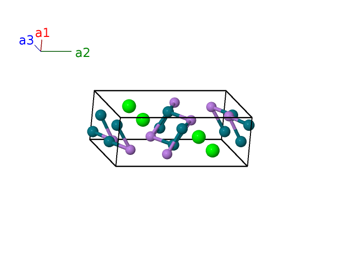 | $\mathbf{B_{6}}$ | = | $- x_{2} \, \mathbf{a}_{1}+\left(y_{2} + \frac{1}{2}\right) \, \mathbf{a}_{2}- \left(z_{2} - \frac{1}{2}\right) \, \mathbf{a}_{3}$ | = | $- \left(a x_{2} + c \left(z_{2} - \frac{1}{2}\right) \cos{\beta}\right) \,\mathbf{\hat{x}}+b \left(y_{2} + \frac{1}{2}\right) \,\mathbf{\hat{y}}- c \left(z_{2} - \frac{1}{2}\right) \sin{\beta} \,\mathbf{\hat{z}}$ | (4e) | As II |