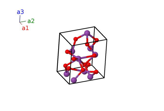 | $\mathbf{B_{12}}$ | = | $y_{3} \, \mathbf{a}_{1}+x_{3} \, \mathbf{a}_{2}+\left(z_{3} + \frac{1}{2}\right) \, \mathbf{a}_{3}$ | = | $\frac{1}{2}a \left(x_{3} + y_{3}\right) \,\mathbf{\hat{x}}+\frac{\sqrt{3}}{2}a \left(x_{3} - y_{3}\right) \,\mathbf{\hat{y}}+c \left(z_{3} + \frac{1}{2}\right) \,\mathbf{\hat{z}}$ | (6c) | O I |
