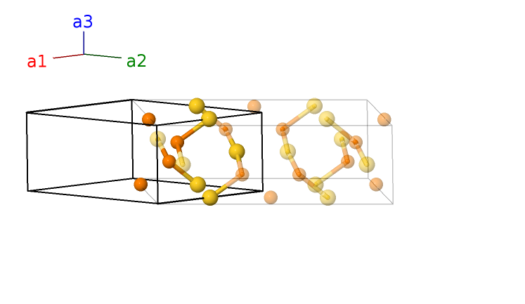 | $\mathbf{B_{4}}$ | = | $y_{2} \, \mathbf{a}_{1}- y_{2} \, \mathbf{a}_{2}+\frac{1}{2} \, \mathbf{a}_{3}$ | = | $\frac{1}{2}c \cos{\beta} \,\mathbf{\hat{x}}- b y_{2} \,\mathbf{\hat{y}}+\frac{1}{2}c \sin{\beta} \,\mathbf{\hat{z}}$ | (4h) | Au II |