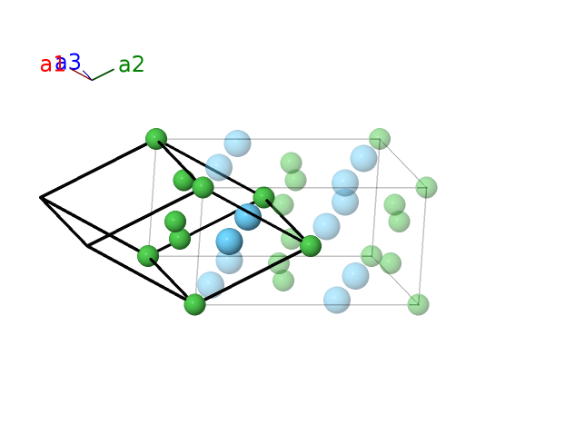| $\mathbf{B_{9}}$ | = | $- \left(y_{3} - \frac{1}{2}\right) \, \mathbf{a}_{1}+\left(y_{3} + \frac{1}{2}\right) \, \mathbf{a}_{2}- \left(z_{3} - \frac{1}{2}\right) \, \mathbf{a}_{3}$ | = | $\frac{1}{2}a \,\mathbf{\hat{x}}+b y_{3} \,\mathbf{\hat{y}}- c \left(z_{3} - \frac{1}{2}\right) \,\mathbf{\hat{z}}$ | (8f) | La I |