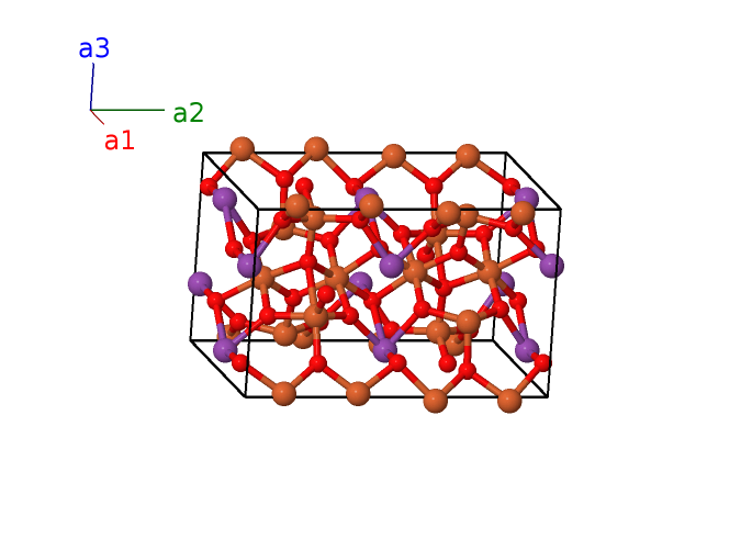 | $\mathbf{B_{30}}$ | = | $- \left(x_{7} - \frac{1}{2}\right) \, \mathbf{a}_{1}- y_{7} \, \mathbf{a}_{2}+\left(z_{7} + \frac{1}{2}\right) \, \mathbf{a}_{3}$ | = | $- a \left(x_{7} - \frac{1}{2}\right) \,\mathbf{\hat{x}}- b y_{7} \,\mathbf{\hat{y}}+c \left(z_{7} + \frac{1}{2}\right) \,\mathbf{\hat{z}}$ | (8d) | Fe III |
