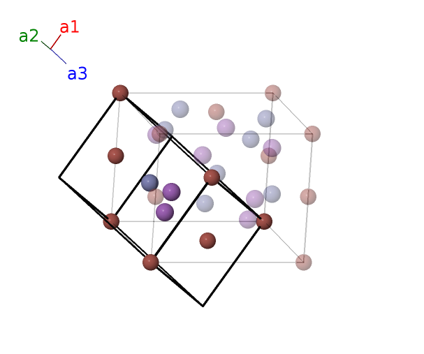 | $\mathbf{B_{4}}$ | = | $- \left(y_{3} - z_{3}\right) \, \mathbf{a}_{1}- \left(x_{3} - z_{3}\right) \, \mathbf{a}_{2}- \left(x_{3} + y_{3}\right) \, \mathbf{a}_{3}$ | = | $- a x_{3} \,\mathbf{\hat{x}}- a y_{3} \,\mathbf{\hat{y}}+c z_{3} \,\mathbf{\hat{z}}$ | (8c) | Sb I |