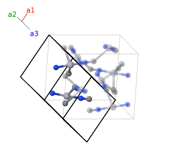 | $\mathbf{B_{19}}$ | = | $\left(- x_{3} + z_{3} + \frac{3}{4}\right) \, \mathbf{a}_{1}+\left(- y_{3} + z_{3} + \frac{1}{4}\right) \, \mathbf{a}_{2}- \left(x_{3} + y_{3} - \frac{1}{2}\right) \, \mathbf{a}_{3}$ | = | $- a y_{3} \,\mathbf{\hat{x}}- a \left(x_{3} - \frac{1}{2}\right) \,\mathbf{\hat{y}}+c \left(z_{3} + \frac{1}{4}\right) \,\mathbf{\hat{z}}$ | (16e) | N I |