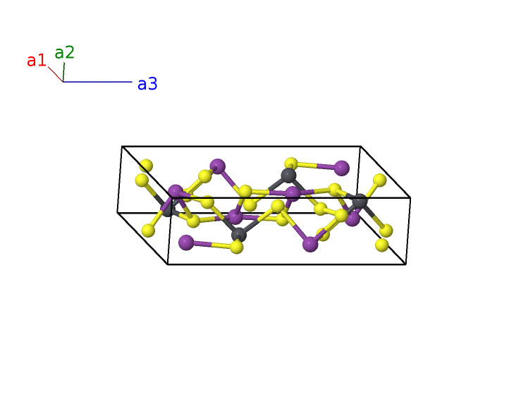 | $\mathbf{B_{24}}$ | = | $\left(x_{6} + \frac{1}{2}\right) \, \mathbf{a}_{1}+\frac{1}{4} \, \mathbf{a}_{2}- \left(z_{6} - \frac{1}{2}\right) \, \mathbf{a}_{3}$ | = | $a \left(x_{6} + \frac{1}{2}\right) \,\mathbf{\hat{x}}+\frac{1}{4}b \,\mathbf{\hat{y}}- c \left(z_{6} - \frac{1}{2}\right) \,\mathbf{\hat{z}}$ | (4c) | S III |