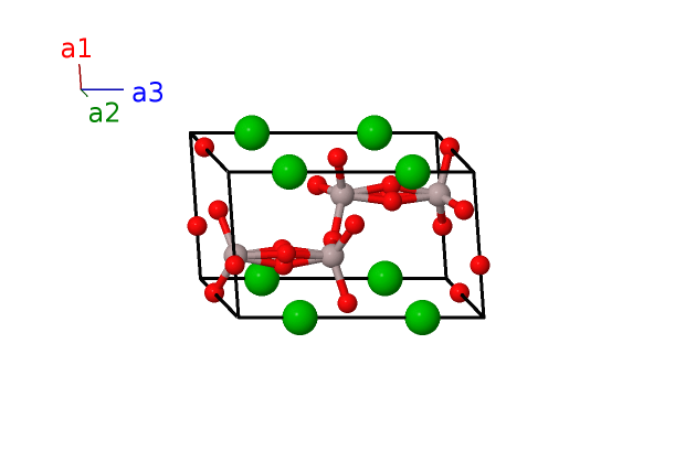 | $\mathbf{B_{3}}$ | = | $\frac{1}{3} \, \mathbf{a}_{1}+\frac{2}{3} \, \mathbf{a}_{2}+z_{2} \, \mathbf{a}_{3}$ | = | $\frac{1}{2}a \,\mathbf{\hat{x}}+\frac{\sqrt{3}}{6}a \,\mathbf{\hat{y}}+c z_{2} \,\mathbf{\hat{z}}$ | (4f) | Al I |