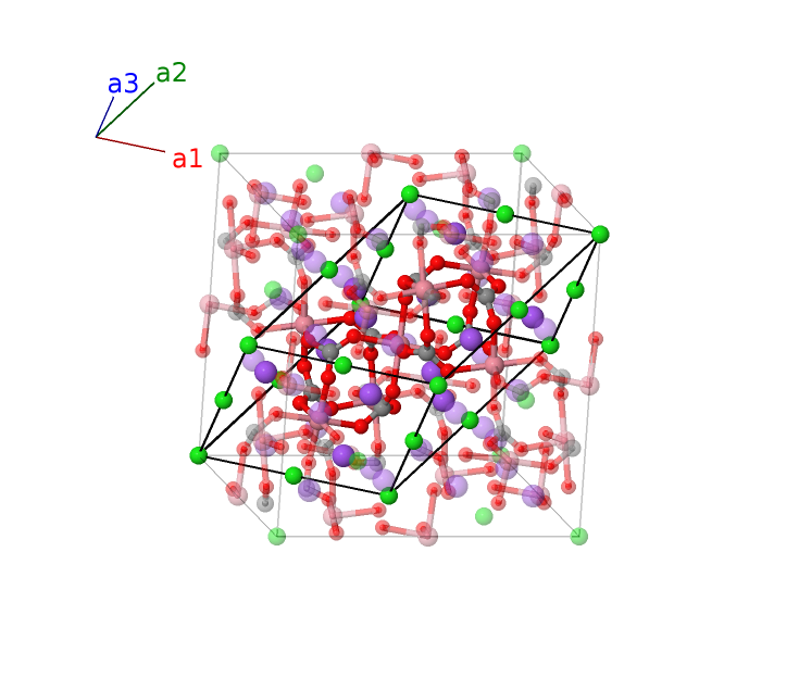 | $\mathbf{B_{27}}$ | = | $- x_{4} \, \mathbf{a}_{1}- x_{4} \, \mathbf{a}_{2}+\left(x_{4} + \frac{3}{4}\right) \, \mathbf{a}_{3}$ | = | $\frac{3}{8}a \,\mathbf{\hat{x}}+\frac{3}{8}a \,\mathbf{\hat{y}}- a x_{4} \,\mathbf{\hat{z}}$ | (48f) | Na I |