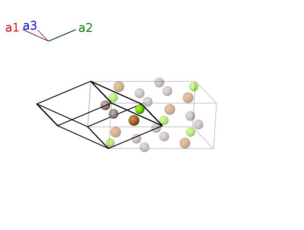 | $\mathbf{B_{6}}$ | = | $y_{3} \, \mathbf{a}_{1}- y_{3} \, \mathbf{a}_{2}+\left(z_{3} + \frac{1}{2}\right) \, \mathbf{a}_{3}$ | = | $- b y_{3} \,\mathbf{\hat{y}}+c \left(z_{3} + \frac{1}{2}\right) \,\mathbf{\hat{z}}$ | (8f) | Al I |