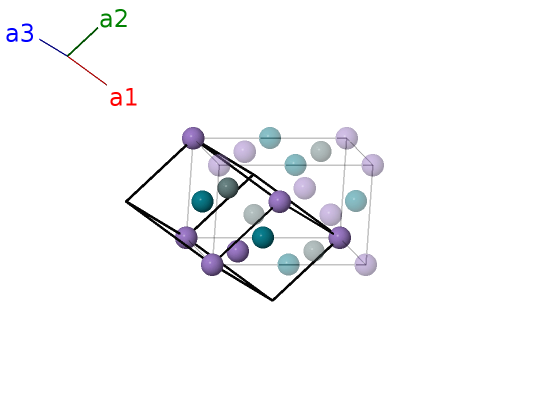 | $\mathbf{B_{2}}$ | = | $\frac{1}{2} \, \mathbf{a}_{1}+\frac{1}{2} \, \mathbf{a}_{2}$ | = | $\frac{1}{2}c \,\mathbf{\hat{z}}$ | (2b) | Rh I |
