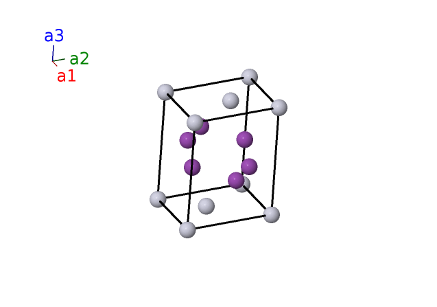 | $\mathbf{B_{2}}$ | = | $\frac{1}{3} \, \mathbf{a}_{1}+\frac{2}{3} \, \mathbf{a}_{2}+z_{2} \, \mathbf{a}_{3}$ | = | $\frac{1}{2}a \,\mathbf{\hat{x}}+\frac{\sqrt{3}}{6}a \,\mathbf{\hat{y}}+c z_{2} \,\mathbf{\hat{z}}$ | (2d) | Pt II |