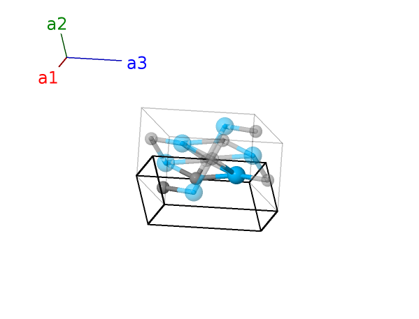 | $\mathbf{B_{3}}$ | = | $\left(x_{2} - y_{2}\right) \, \mathbf{a}_{1}+\left(x_{2} + y_{2}\right) \, \mathbf{a}_{2}+z_{2} \, \mathbf{a}_{3}$ | = | $\left(a x_{2} + c z_{2} \cos{\beta}\right) \,\mathbf{\hat{x}}+b y_{2} \,\mathbf{\hat{y}}+c z_{2} \sin{\beta} \,\mathbf{\hat{z}}$ | (8f) | C I |