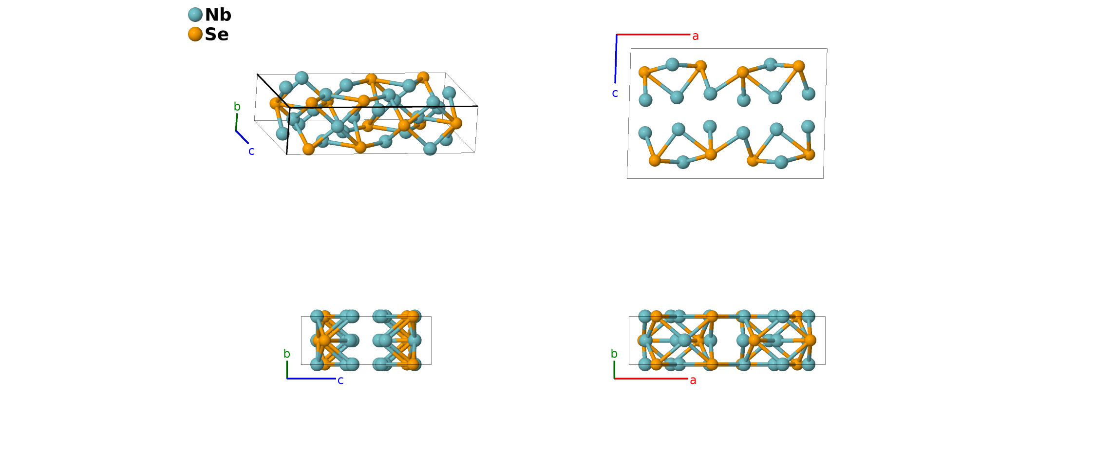 | $\mathbf{B_{3}}$ | = | $x_{2} \, \mathbf{a}_{1}+x_{2} \, \mathbf{a}_{2}+z_{2} \, \mathbf{a}_{3}$ | = | $\left(a x_{2} + c z_{2} \cos{\beta}\right) \,\mathbf{\hat{x}}+c z_{2} \sin{\beta} \,\mathbf{\hat{z}}$ | (4i) | Nb II |
