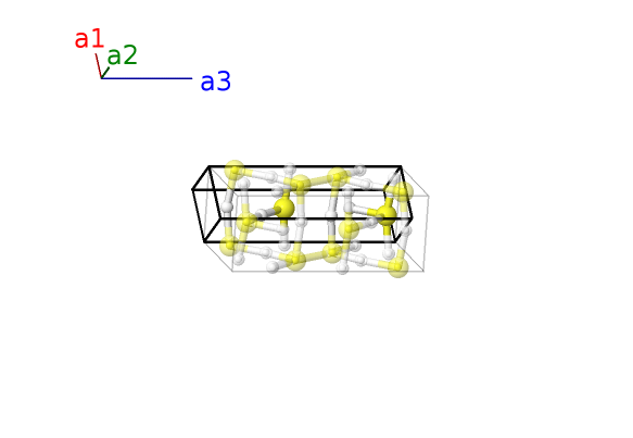 | $\mathbf{B_{7}}$ | = | $- \left(y_{2} - \frac{1}{2}\right) \, \mathbf{a}_{1}+\left(y_{2} + \frac{1}{2}\right) \, \mathbf{a}_{2}- \left(z_{2} - \frac{1}{2}\right) \, \mathbf{a}_{3}$ | = | $\frac{1}{2}a \,\mathbf{\hat{x}}+b y_{2} \,\mathbf{\hat{y}}- c \left(z_{2} - \frac{1}{2}\right) \,\mathbf{\hat{z}}$ | (8f) | H II |