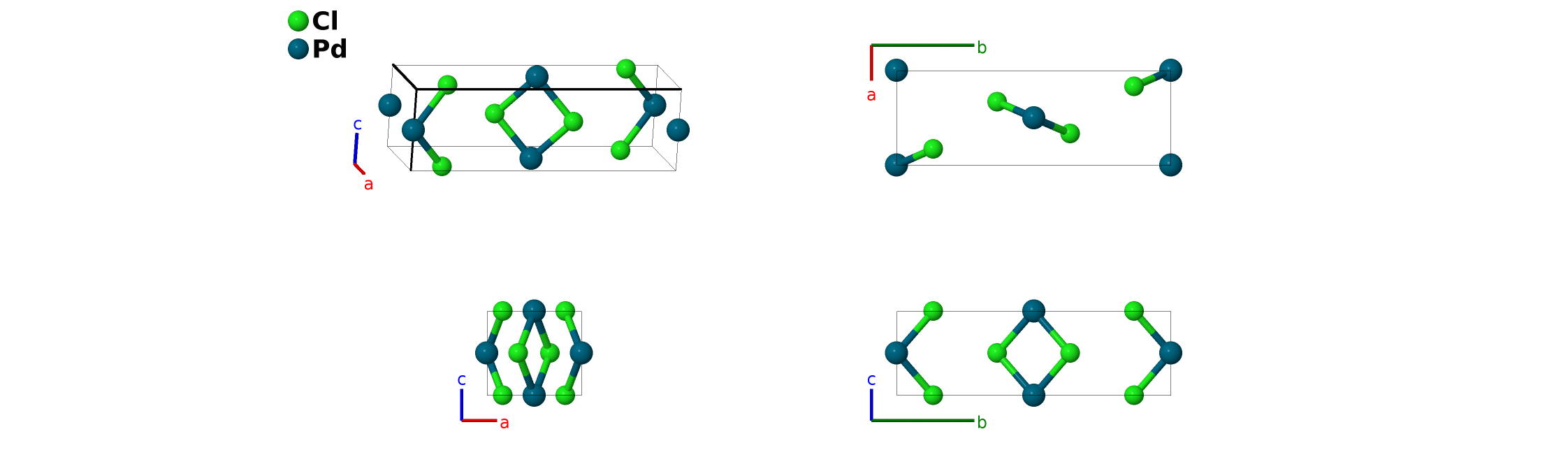 | $\mathbf{B_{2}}$ | = | $\frac{1}{2} \, \mathbf{a}_{1}+\frac{1}{2} \, \mathbf{a}_{2}+\frac{1}{2} \, \mathbf{a}_{3}$ | = | $\frac{1}{2}a \,\mathbf{\hat{x}}+\frac{1}{2}b \,\mathbf{\hat{y}}+\frac{1}{2}c \,\mathbf{\hat{z}}$ | (2a) | Pd I |