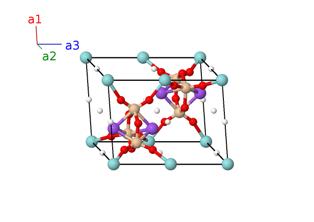 | $\mathbf{B_{3}}$ | = | $\frac{1}{3} \, \mathbf{a}_{1}+\frac{2}{3} \, \mathbf{a}_{2}+z_{2} \, \mathbf{a}_{3}$ | = | $\frac{1}{2}a \,\mathbf{\hat{x}}+\frac{\sqrt{3}}{6}a \,\mathbf{\hat{y}}+c z_{2} \,\mathbf{\hat{z}}$ | (4f) | Na I |