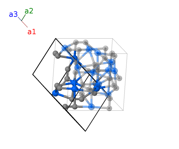 | $\mathbf{B_{4}}$ | = | $- \left(2 x_{1} - \frac{1}{2}\right) \, \mathbf{a}_{1}+\frac{1}{2} \, \mathbf{a}_{2}$ | = | $a x_{1} \,\mathbf{\hat{x}}- a x_{1} \,\mathbf{\hat{y}}- a \left(x_{1} - \frac{1}{2}\right) \,\mathbf{\hat{z}}$ | (16c) | Pu I |