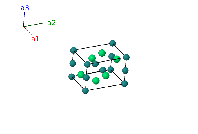 | $\mathbf{B_{3}}$ | = | $\frac{1}{3} \, \mathbf{a}_{1}+\frac{2}{3} \, \mathbf{a}_{2}+\frac{1}{4} \, \mathbf{a}_{3}$ | = | $\frac{1}{2}a \,\mathbf{\hat{x}}+\frac{\sqrt{3}}{6}a \,\mathbf{\hat{y}}+\frac{1}{4}c \,\mathbf{\hat{z}}$ | (2c) | Ru II |