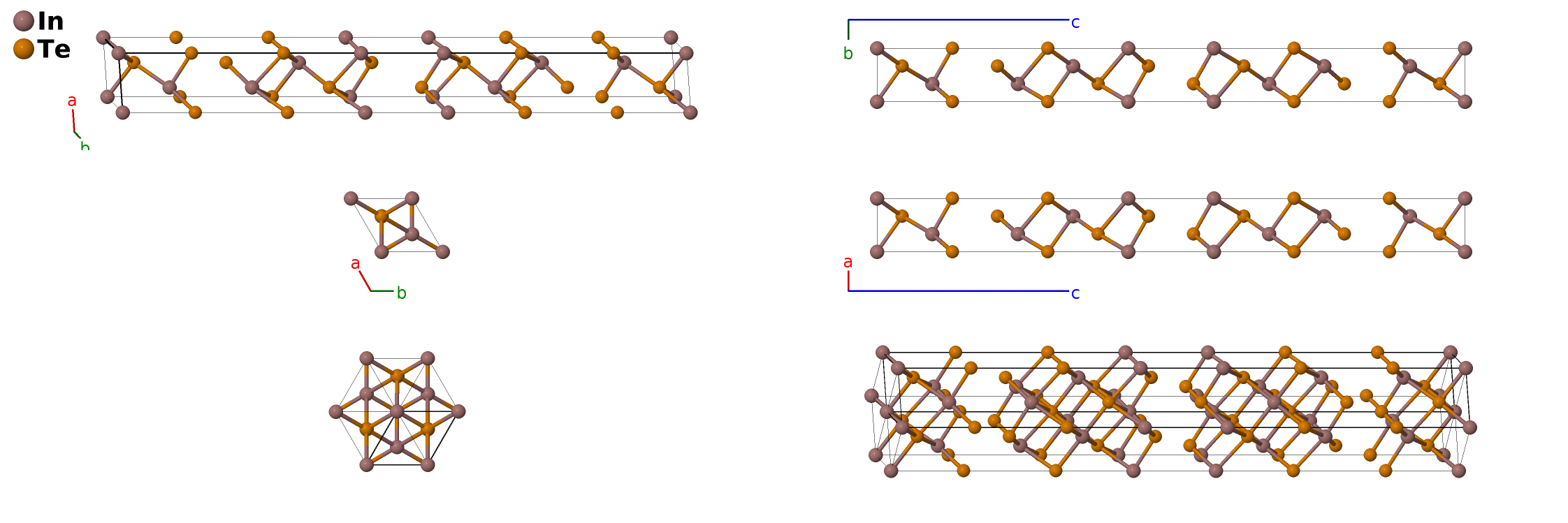 Bi$_{3}$Te$_{4}$, Fe$_{3}$S$_{4}$ (smythite), In$_{3}$Se$_{4}$