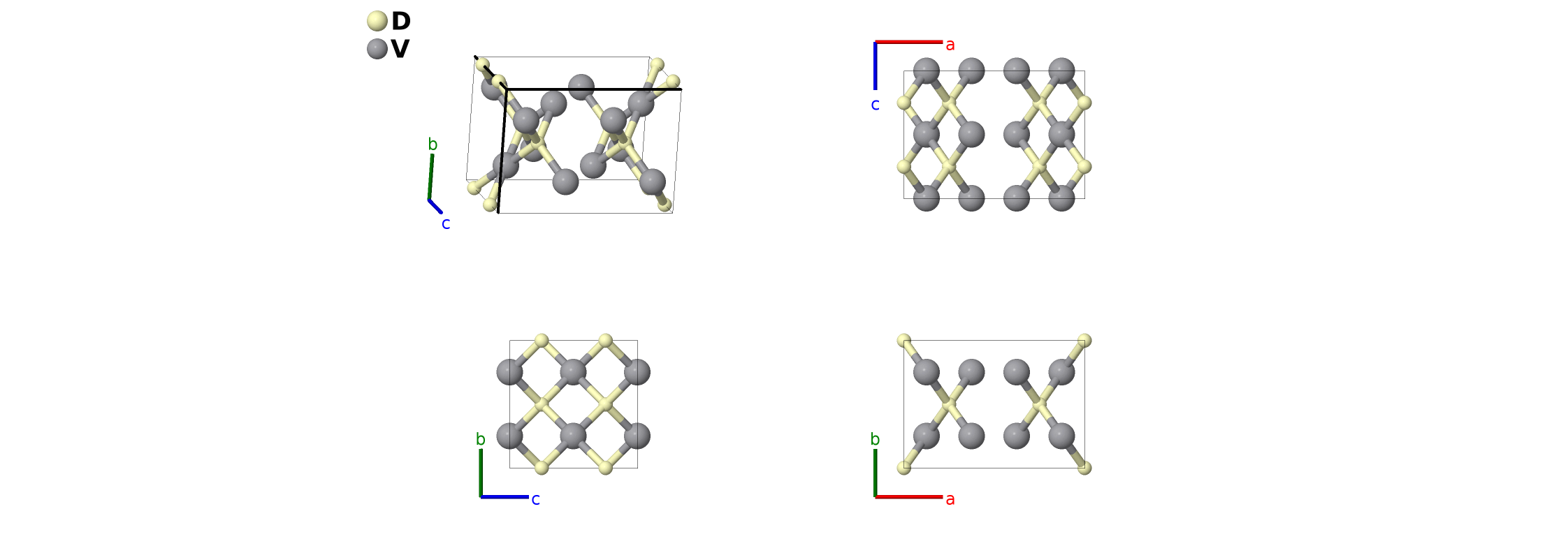 | $\mathbf{B_{4}}$ | = | $- x_{2} \, \mathbf{a}_{1}+\frac{1}{2} \, \mathbf{a}_{2}+\frac{1}{4} \, \mathbf{a}_{3}$ | = | $- a x_{2} \,\mathbf{\hat{x}}+\frac{1}{2}b \,\mathbf{\hat{y}}+\frac{1}{4}c \,\mathbf{\hat{z}}$ | (4j) | D II |