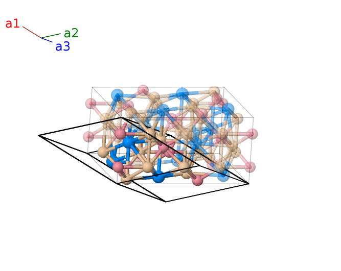 | $\mathbf{B_{11}}$ | = | $\left(y_{4} + \frac{1}{2}\right) \, \mathbf{a}_{1}- \left(x_{4} - \frac{1}{2}\right) \, \mathbf{a}_{2}- \left(x_{4} - y_{4}\right) \, \mathbf{a}_{3}$ | = | $- a x_{4} \,\mathbf{\hat{x}}+b y_{4} \,\mathbf{\hat{y}}+\frac{1}{2}c \,\mathbf{\hat{z}}$ | (8j) | Co II |