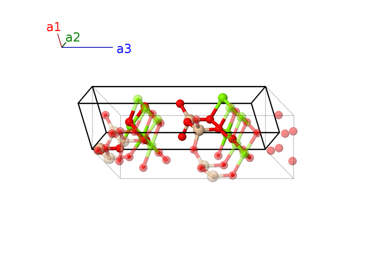 | $\mathbf{B_{18}}$ | = | $\left(x_{9} + y_{9}\right) \, \mathbf{a}_{1}+\left(x_{9} - y_{9}\right) \, \mathbf{a}_{2}+\left(z_{9} + \frac{1}{2}\right) \, \mathbf{a}_{3}$ | = | $\left(a x_{9} + c \left(z_{9} + \frac{1}{2}\right) \cos{\beta}\right) \,\mathbf{\hat{x}}- b y_{9} \,\mathbf{\hat{y}}+c \left(z_{9} + \frac{1}{2}\right) \sin{\beta} \,\mathbf{\hat{z}}$ | (4a) | OH I |