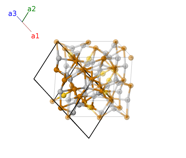 | $\mathbf{B_{3}}$ | = | $\frac{1}{4} \, \mathbf{a}_{2}+\frac{1}{2} \, \mathbf{a}_{3}$ | = | $\frac{3}{8}a \,\mathbf{\hat{x}}+\frac{1}{8}a \,\mathbf{\hat{y}}- \frac{1}{8}a \,\mathbf{\hat{z}}$ | (8a) | Au I |