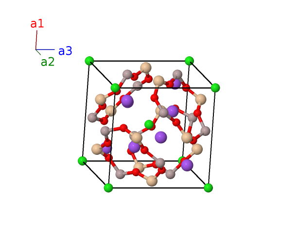| $\mathbf{B_{20}}$ | = | $- \left(x_{4} - \frac{1}{2}\right) \, \mathbf{a}_{1}- \left(x_{4} - \frac{1}{2}\right) \, \mathbf{a}_{2}+\left(x_{4} + \frac{1}{2}\right) \, \mathbf{a}_{3}$ | = | $- a \left(x_{4} - \frac{1}{2}\right) \,\mathbf{\hat{x}}- a \left(x_{4} - \frac{1}{2}\right) \,\mathbf{\hat{y}}+a \left(x_{4} + \frac{1}{2}\right) \,\mathbf{\hat{z}}$ | (8e) | Na I |