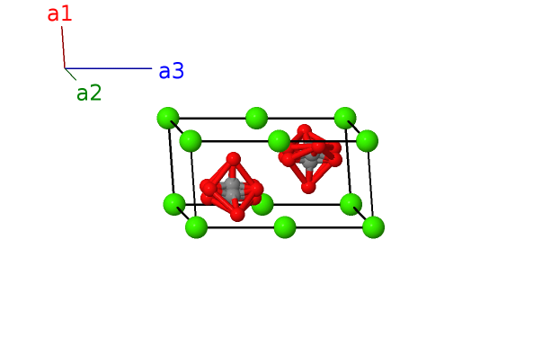 | $\mathbf{B_{18}}$ | = | $- x_{4} \, \mathbf{a}_{1}- 2 x_{4} \, \mathbf{a}_{2}+\left(z_{4} + \frac{1}{2}\right) \, \mathbf{a}_{3}$ | = | $- \frac{3}{2}a x_{4} \,\mathbf{\hat{x}}- \frac{\sqrt{3}}{2}a x_{4} \,\mathbf{\hat{y}}+c \left(z_{4} + \frac{1}{2}\right) \,\mathbf{\hat{z}}$ | (12k) | O II |
