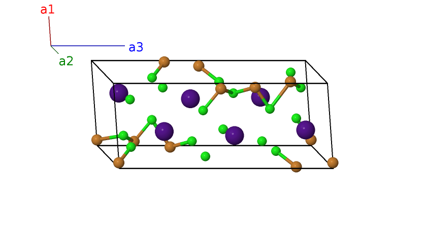 | $\mathbf{B_{22}}$ | = | $- x_{4} \, \mathbf{a}_{1}- y_{4} \, \mathbf{a}_{2}+\left(z_{4} + \frac{1}{2}\right) \, \mathbf{a}_{3}$ | = | $- \frac{1}{2}a \left(x_{4} + y_{4}\right) \,\mathbf{\hat{x}}+\frac{\sqrt{3}}{2}a \left(x_{4} - y_{4}\right) \,\mathbf{\hat{y}}+c \left(z_{4} + \frac{1}{2}\right) \,\mathbf{\hat{z}}$ | (12c) | Cl II |