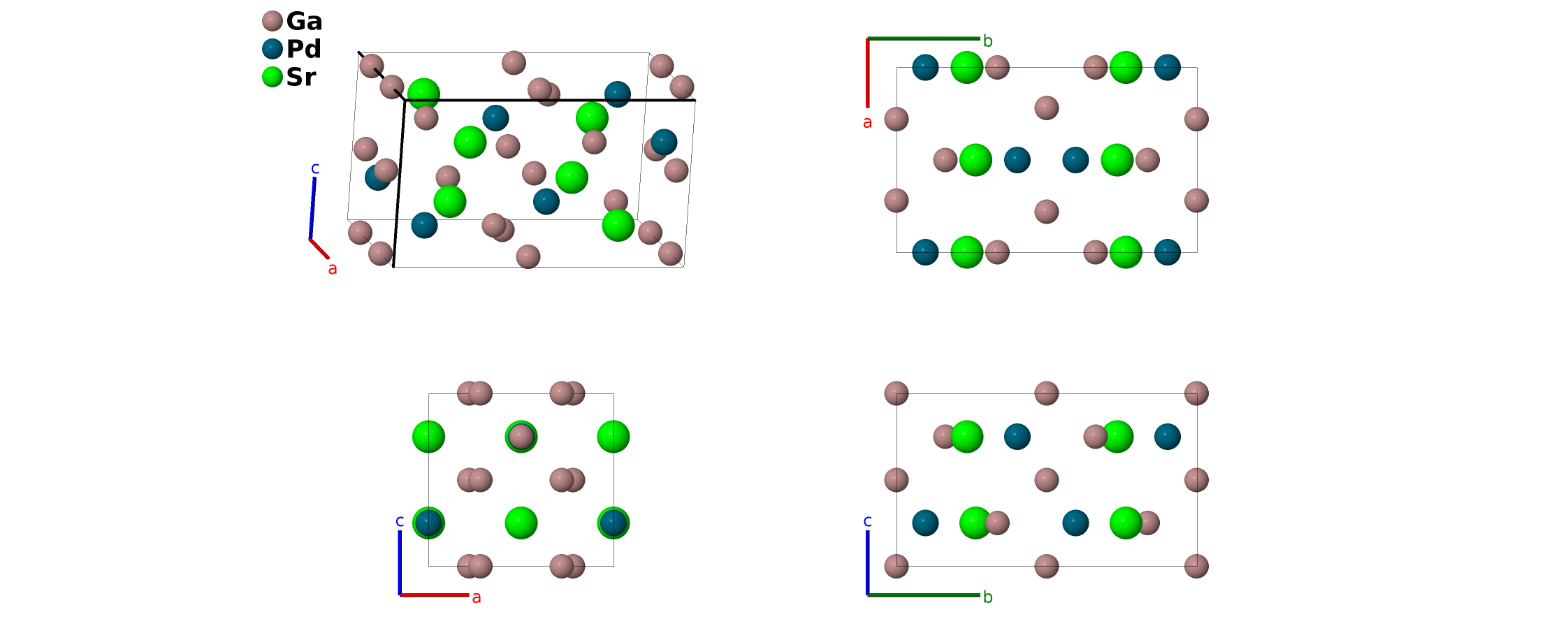 | $\mathbf{B_{3}}$ | = | $- y_{2} \, \mathbf{a}_{1}+y_{2} \, \mathbf{a}_{2}+\frac{1}{4} \, \mathbf{a}_{3}$ | = | $b y_{2} \,\mathbf{\hat{y}}+\frac{1}{4}c \,\mathbf{\hat{z}}$ | (4c) | Pd I |