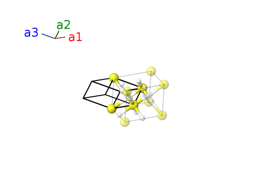 | $\mathbf{B_{2}}$ | = | $x_{2} \, \mathbf{a}_{1}+x_{2} \, \mathbf{a}_{2}+z_{2} \, \mathbf{a}_{3}$ | = | $\frac{1}{2}a \left(x_{2} - z_{2}\right) \,\mathbf{\hat{x}}+\frac{\sqrt{3}}{6}a \left(x_{2} - z_{2}\right) \,\mathbf{\hat{y}}+\frac{1}{3}c \left(2 x_{2} + z_{2}\right) \,\mathbf{\hat{z}}$ | (3b) | H I |