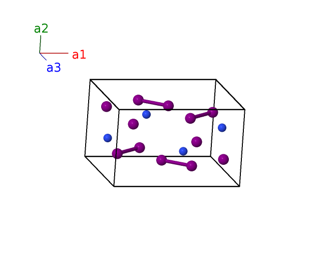 | $\mathbf{B_{10}}$ | = | $- \left(x_{3} - \frac{1}{2}\right) \, \mathbf{a}_{1}+\frac{3}{4} \, \mathbf{a}_{2}+\left(z_{3} + \frac{1}{2}\right) \, \mathbf{a}_{3}$ | = | $- a \left(x_{3} - \frac{1}{2}\right) \,\mathbf{\hat{x}}+\frac{3}{4}b \,\mathbf{\hat{y}}+c \left(z_{3} + \frac{1}{2}\right) \,\mathbf{\hat{z}}$ | (4c) | I III |