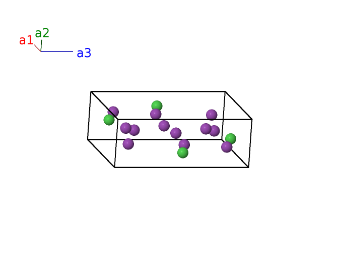 | $\mathbf{B_{14}}$ | = | $- \left(x_{4} - \frac{1}{2}\right) \, \mathbf{a}_{1}+\frac{3}{4} \, \mathbf{a}_{2}+\left(z_{4} + \frac{1}{2}\right) \, \mathbf{a}_{3}$ | = | $- a \left(x_{4} - \frac{1}{2}\right) \,\mathbf{\hat{x}}+\frac{3}{4}b \,\mathbf{\hat{y}}+c \left(z_{4} + \frac{1}{2}\right) \,\mathbf{\hat{z}}$ | (4c) | Ni I |