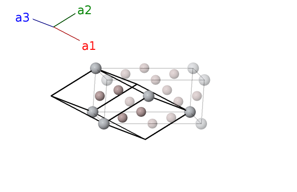 | $\mathbf{B_{4}}$ | = | $\frac{1}{4} \, \mathbf{a}_{1}+\frac{3}{4} \, \mathbf{a}_{2}+\frac{1}{2} \, \mathbf{a}_{3}$ | = | $\frac{1}{2}a \,\mathbf{\hat{x}}+\frac{1}{4}c \,\mathbf{\hat{z}}$ | (4d) | Al II |