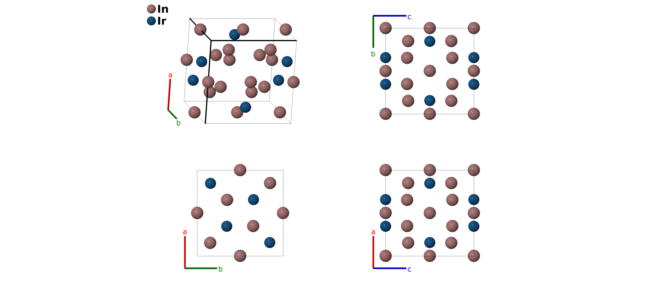 | $\mathbf{B_{8}}$ | = | $\left(x_{2} + \frac{1}{2}\right) \, \mathbf{a}_{1}- \left(x_{2} - \frac{1}{2}\right) \, \mathbf{a}_{2}+\frac{1}{2} \, \mathbf{a}_{3}$ | = | $a \left(x_{2} + \frac{1}{2}\right) \,\mathbf{\hat{x}}- a \left(x_{2} - \frac{1}{2}\right) \,\mathbf{\hat{y}}+\frac{1}{2}c \,\mathbf{\hat{z}}$ | (4f) | Ir I |