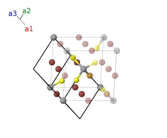 | $\mathbf{B_{2}}$ | = | $\frac{1}{2} \, \mathbf{a}_{2}+\frac{1}{2} \, \mathbf{a}_{3}$ | = | $\frac{1}{2}a \,\mathbf{\hat{x}}$ | (6b) | Tl I |