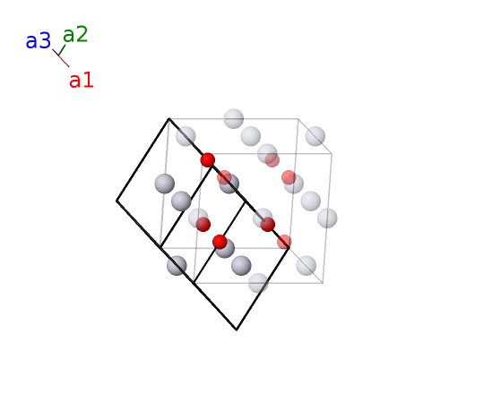 | $\mathbf{B_{5}}$ | = | $\frac{1}{2} \, \mathbf{a}_{3}$ | = | $\frac{1}{4}a \,\mathbf{\hat{x}}+\frac{1}{4}a \,\mathbf{\hat{y}}- \frac{1}{4}a \,\mathbf{\hat{z}}$ | (8c) | O I |