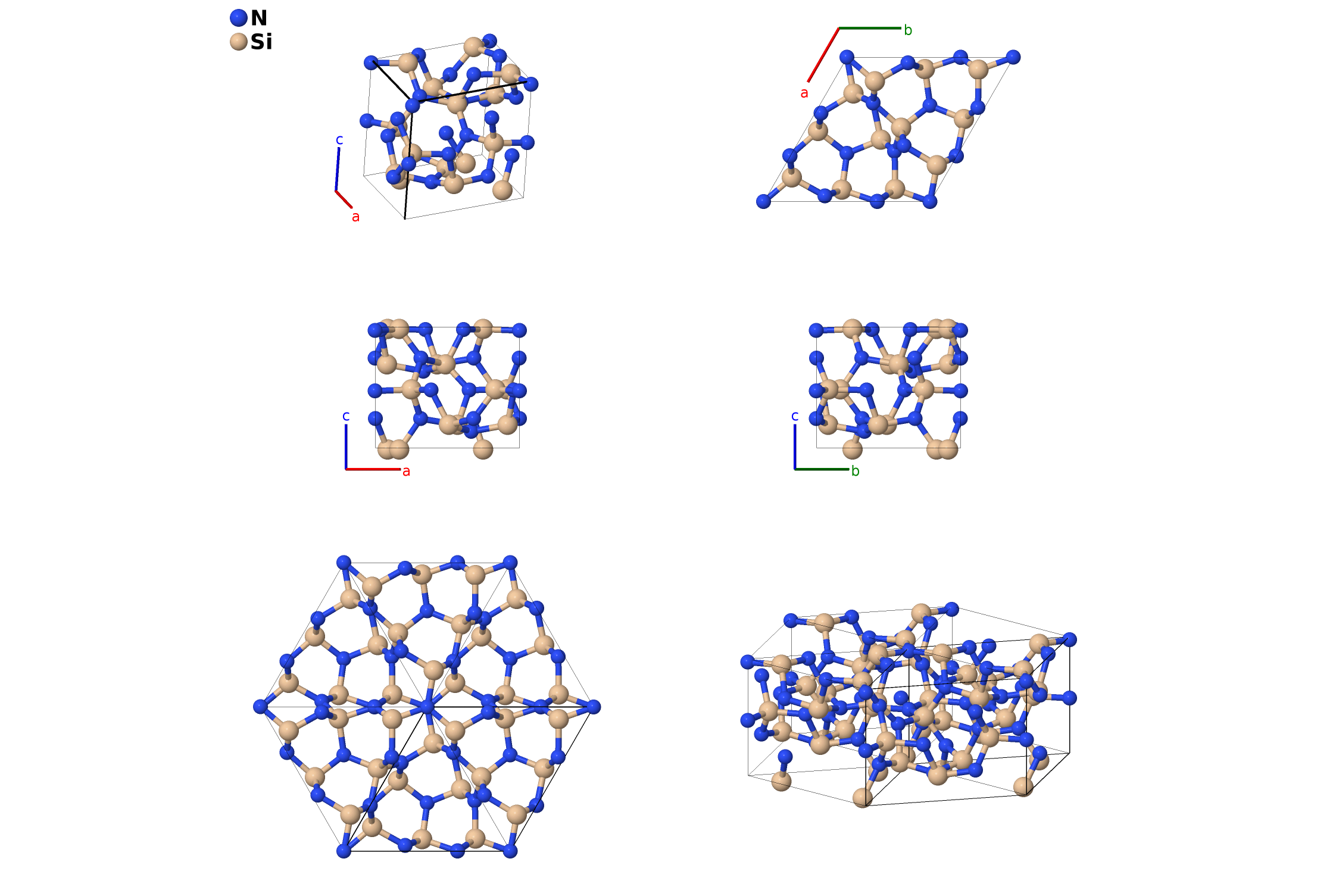 | $\mathbf{B_{20}}$ | = | $y_{5} \, \mathbf{a}_{1}+x_{5} \, \mathbf{a}_{2}+\left(z_{5} + \frac{1}{2}\right) \, \mathbf{a}_{3}$ | = | $\frac{1}{2}a \left(x_{5} + y_{5}\right) \,\mathbf{\hat{x}}+\frac{\sqrt{3}}{2}a \left(x_{5} - y_{5}\right) \,\mathbf{\hat{y}}+c \left(z_{5} + \frac{1}{2}\right) \,\mathbf{\hat{z}}$ | (6c) | Si I |