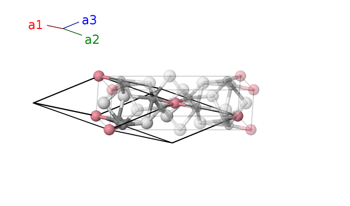 | $\mathbf{B_{4}}$ | = | $\frac{1}{2} \, \mathbf{a}_{1}- x_{3} \, \mathbf{a}_{2}- \left(x_{3} - \frac{1}{2}\right) \, \mathbf{a}_{3}$ | = | $- a x_{3} \,\mathbf{\hat{x}}+\frac{1}{2}b \,\mathbf{\hat{y}}$ | (4f) | Sc II |