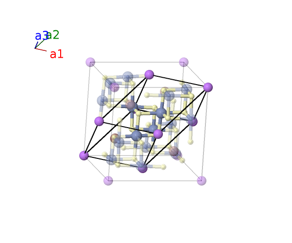 | $\mathbf{B_{2}}$ | = | $\frac{1}{4} \, \mathbf{a}_{1}+\frac{1}{4} \, \mathbf{a}_{2}+\frac{1}{4} \, \mathbf{a}_{3}$ | = | $\frac{1}{4}a \,\mathbf{\hat{x}}+\frac{1}{4}a \,\mathbf{\hat{y}}+\frac{1}{4}a \,\mathbf{\hat{z}}$ | (4c) | Li I |