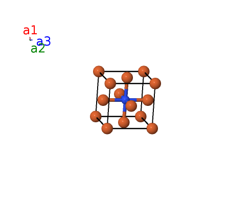 | $\mathbf{B_{2}}$ | = | $\frac{1}{2} \, \mathbf{a}_{1}+\frac{1}{2} \, \mathbf{a}_{2}+\frac{1}{2} \, \mathbf{a}_{3}$ | = | $\frac{1}{2}a \,\mathbf{\hat{x}}+\frac{1}{2}a \,\mathbf{\hat{y}}+\frac{1}{2}a \,\mathbf{\hat{z}}$ | (1b) | N I |