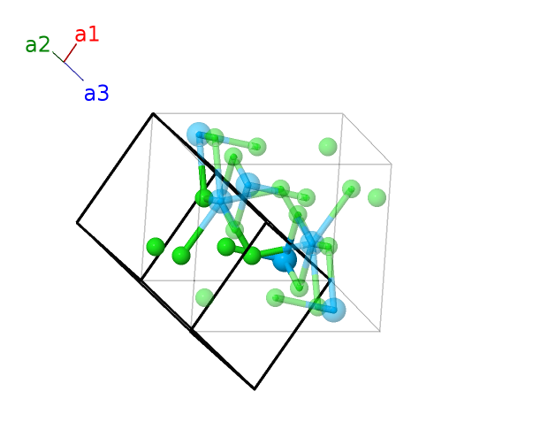 | $\mathbf{B_{10}}$ | = | $- z_{2} \, \mathbf{a}_{1}- \left(y_{2} + z_{2}\right) \, \mathbf{a}_{2}- \left(y_{2} - \frac{1}{2}\right) \, \mathbf{a}_{3}$ | = | $- a \left(y_{2} - \frac{1}{4}\right) \,\mathbf{\hat{x}}+\frac{1}{4}a \,\mathbf{\hat{y}}- c \left(z_{2} + \frac{1}{4}\right) \,\mathbf{\hat{z}}$ | (16h) | Cl I |