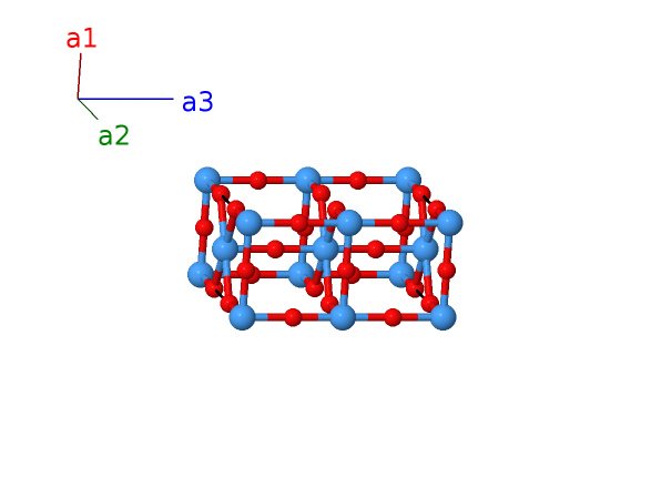 | $\mathbf{B_{9}}$ | = | $\frac{1}{2} \, \mathbf{a}_{1}+\frac{1}{2} \, \mathbf{a}_{2}+\frac{1}{4} \, \mathbf{a}_{3}$ | = | $\frac{1}{2}a \,\mathbf{\hat{x}}+\frac{1}{2}b \,\mathbf{\hat{y}}+\frac{1}{4}c \,\mathbf{\hat{z}}$ | (2h) | O III |