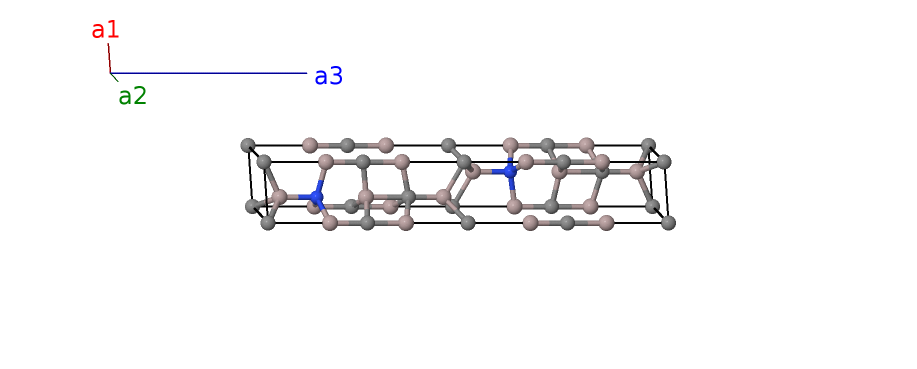 | $\mathbf{B_{17}}$ | = | $\frac{1}{3} \, \mathbf{a}_{1}+\frac{2}{3} \, \mathbf{a}_{2}+z_{9} \, \mathbf{a}_{3}$ | = | $\frac{1}{2}a \,\mathbf{\hat{x}}+\frac{\sqrt{3}}{6}a \,\mathbf{\hat{y}}+c z_{9} \,\mathbf{\hat{z}}$ | (2b) | N I |