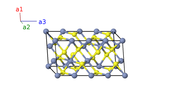 | $\mathbf{B_{21}}$ | = | $\left(x_{5} - y_{5}\right) \, \mathbf{a}_{1}- y_{5} \, \mathbf{a}_{2}+\left(z_{5} + \frac{1}{2}\right) \, \mathbf{a}_{3}$ | = | $\frac{1}{2}a \left(x_{5} - 2 y_{5}\right) \,\mathbf{\hat{x}}- \frac{\sqrt{3}}{2}a x_{5} \,\mathbf{\hat{y}}+c \left(z_{5} + \frac{1}{2}\right) \,\mathbf{\hat{z}}$ | (12i) | S I |