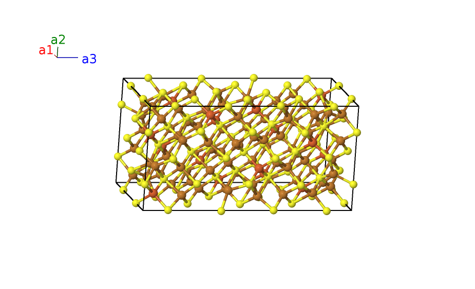 | $\mathbf{B_{48}}$ | = | $- \left(x_{6} - \frac{1}{2}\right) \, \mathbf{a}_{1}+\left(y_{6} + \frac{1}{2}\right) \, \mathbf{a}_{2}+z_{6} \, \mathbf{a}_{3}$ | = | $- a \left(x_{6} - \frac{1}{2}\right) \,\mathbf{\hat{x}}+b \left(y_{6} + \frac{1}{2}\right) \,\mathbf{\hat{y}}+c z_{6} \,\mathbf{\hat{z}}$ | (8c) | Cu VI |